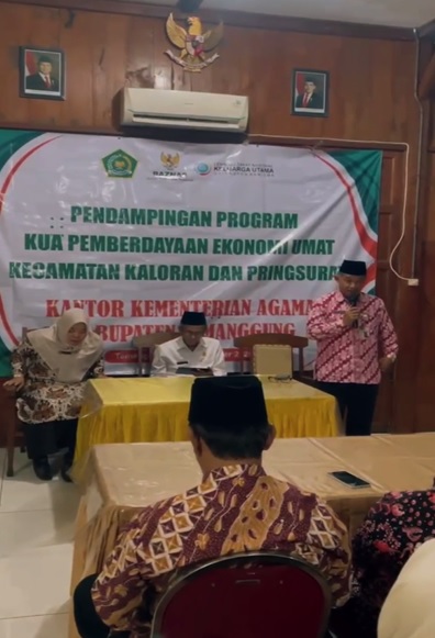 Temanggung (Humas) – Kantor Kementerian Agama Kabupaten Temanggung melalui Penyelenggara Zakat dan Wakaf bekerjasama dengan Baznas Temanggung melaksanakan pendampingan ekonomi produktif bagi penerima manfaat Program KUA – PEU (Pemberdayaan Ekonomi Umat) bertempat di Rumah Makan Artomoro Kranggan, Rabu (24/9/2025).
